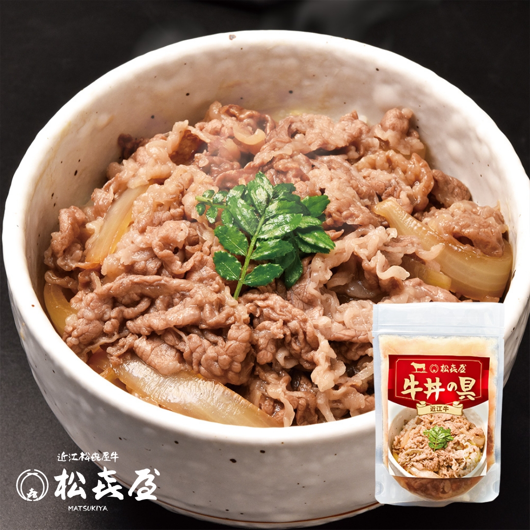 れすとらん松喜屋のシェフがこだわって作った、手作りの牛丼の具です。近江牛スライスを玉ねぎと秘伝のたれでじっくりと仕上げました。
