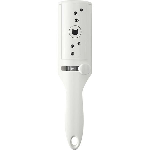 抜け毛やホコリをからめとった後は、本体中央にあるレバーを左右にスライドすると、自動的に内部のダストボックスに収納されます。