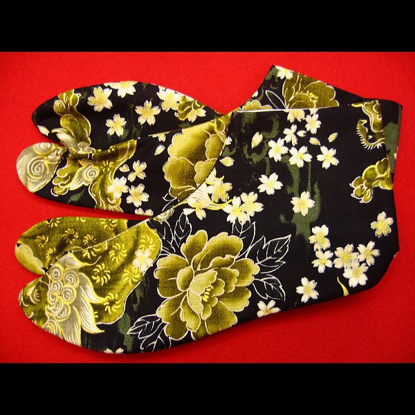 和柄足袋 金彩唐獅子牡丹に桜吹雪(黒カラシ)お洒落な和柄足袋 義若オリジナル【ゆうパケット送料無料】