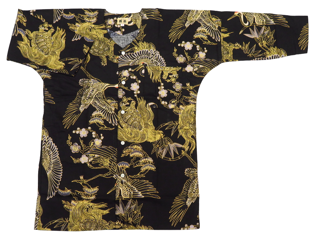 鯉口シャツ 金彩鶴亀(黒金)大人鯉口シャツ単品 男女兼用 義若オリジナル