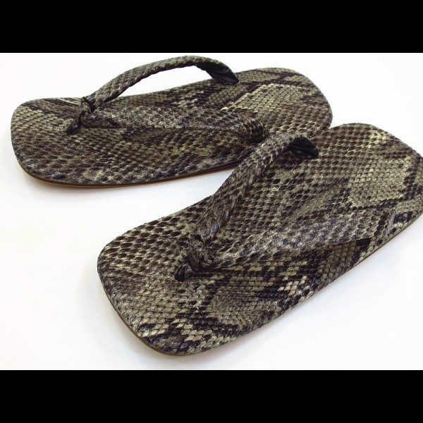 雪駄 セッタ 雪駄 総ニシキヘビ(黒茶系) ライト底 Sサイズ(8寸)〜フリーサイズ(8寸3分) (22cm〜26cm) 日本製 セッタ せった