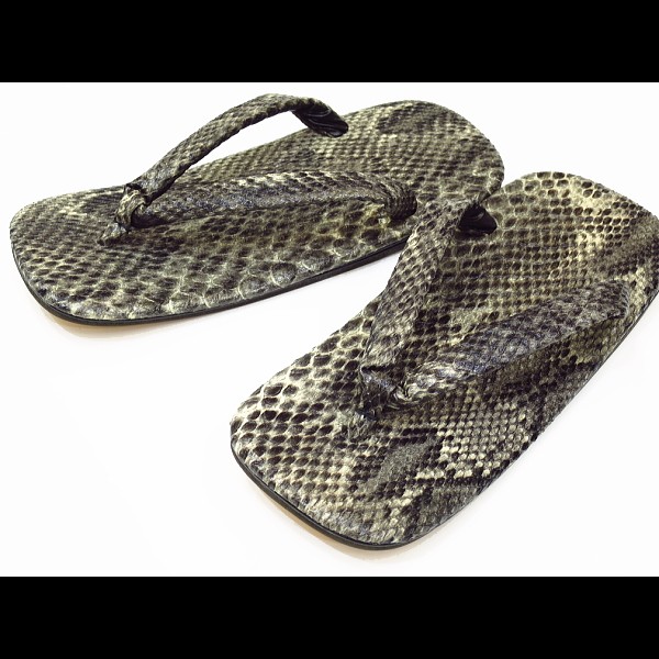 雪駄 セッタ 雪駄 総ニシキヘビ(茶グレー) 本革底 LLサイズ(9寸) (26.5cm〜28cm) 日本製 セッタ せった