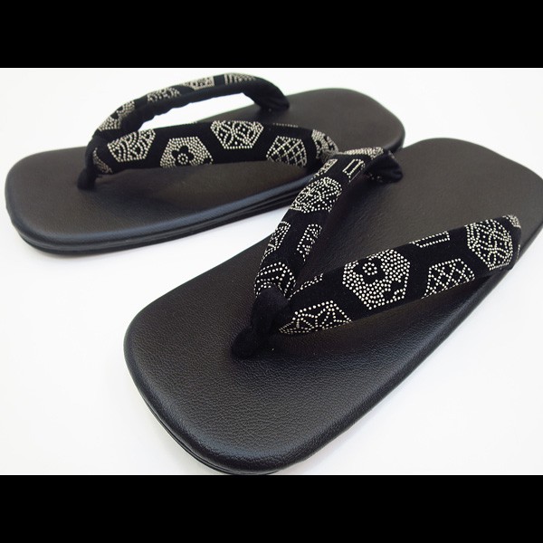 雪駄 セッタ 雪駄 黒牛革調・亀甲印伝風鼻緒 黒ライト底 Mサイズ(8寸3分)〜LLサイズ(9寸) (25cm〜28cm) 日本製 セッタ せった