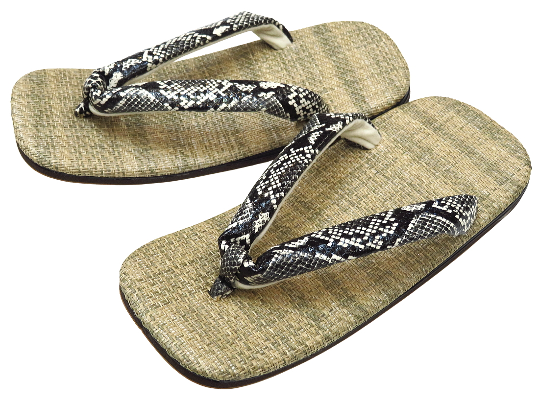 雪駄 パナマ表・ヘビ柄鼻緒 ライト底 Sサイズ(8寸)〜LLサイズ(9寸) 日本製 セッタ・せった