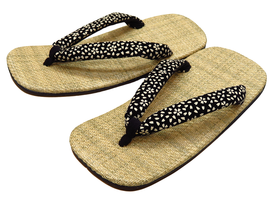 雪駄 セッタ パナマ表・桜柄印伝風鼻緒 ライト底 Mサイズ(8寸3分)〜LLサイズ(9寸)(25cm〜28cm) 日本製