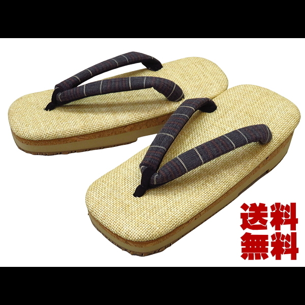 雪駄 セッタ 雪駄 ラタンメッシュベージュ(横縞・チャコールグレー) 毘沙門コルク底 Lサイズ(8寸6分) (26cm〜27cm) 日本製