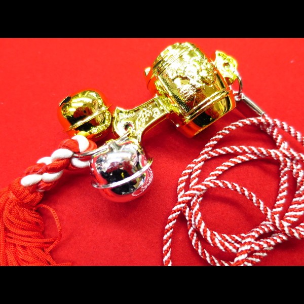 金銀たすき鈴 金小槌と房付き (紅白ひも)