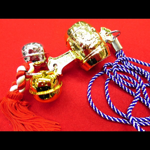 金銀たすき鈴 金小槌と房付き (紫白ひも)