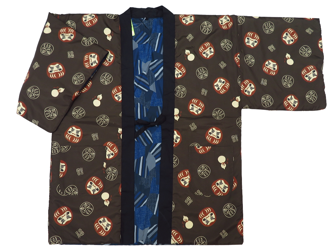 アンティーク和柄!綿入れ半纏リバーシブル(福だるま 茶) 男性用フリーサイズ
