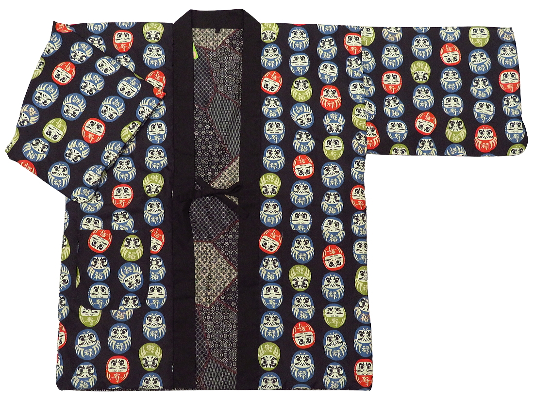 アンティーク和柄!綿入れ半纏リバーシブル(達磨尽くし 黒)男性用フリーサイズ