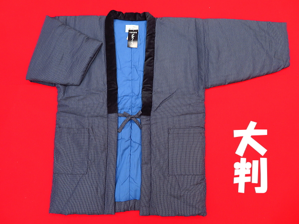 大判サイズ・本場久留米!綿入れ半纏!大島調亀甲絣(グレー) 男性用 日本製