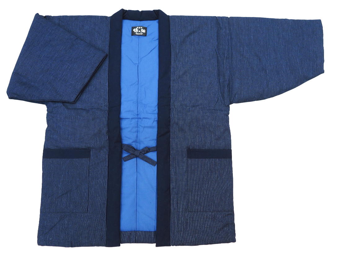 本場久留米!綿入れ半纏!極細縞(紺) 男性用フリーサイズ 日本製
