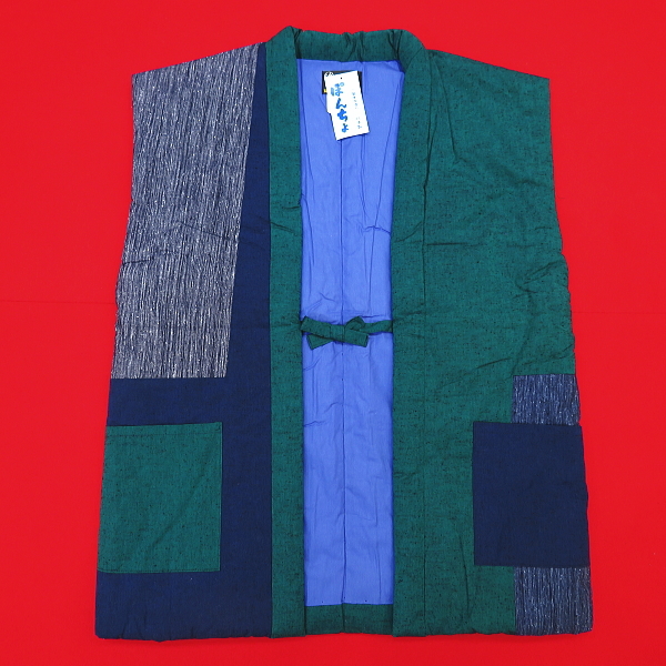 本場久留米!綿入れ半纏袖なしポンチョ!パッチワークB(緑) 男性用フリーサイズ 日本製