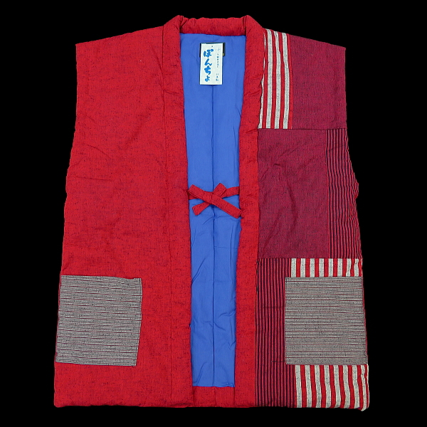 本場久留米!綿入れ半纏袖なしポンチョ!パッチワークC(赤系) 男性用フリーサイズ 日本製