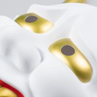塩化ビニル樹脂(PVC)製の軽くて扱いやすいお面です。本格的な桐のお面と見間違えてしまうくらい細部にわたってリアルに質感も良く作りこまれています。