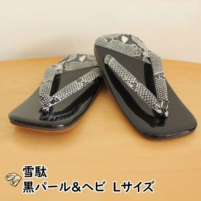 錦へび柄&エナメル調パール雪駄(黒色) ライト底 Lサイズ(約25cm)