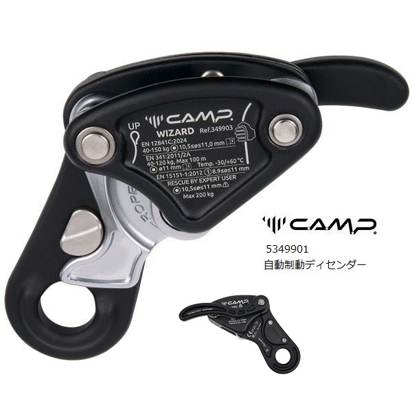 場合、カムが再び作動しロープをロックして、危険な下降速度を防