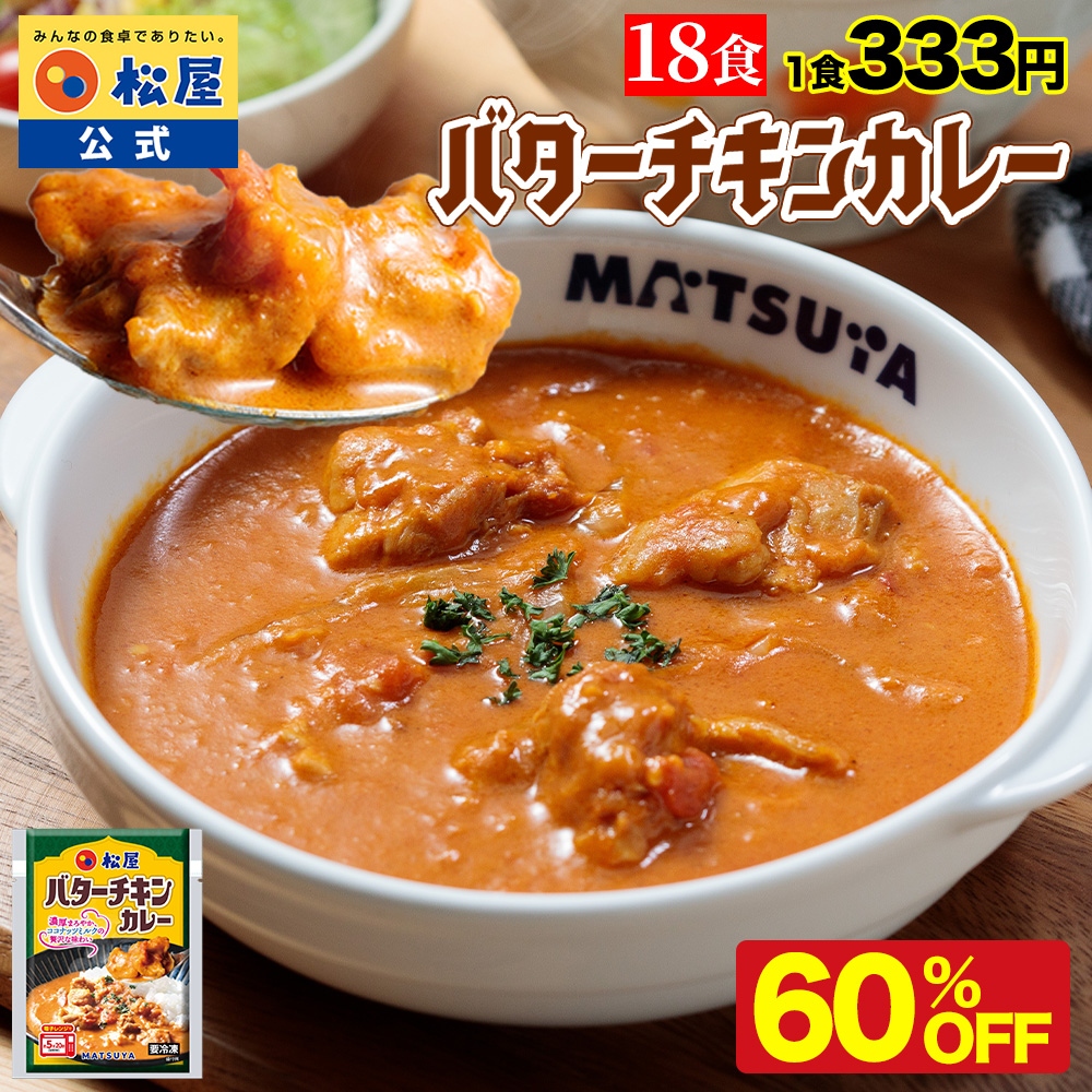 (衝撃の60%OFF) 松屋 公式 バターチキンカレー 18食 バターチキン ごろごろチキン カレー 本格 トマト ココナッツミルク 牛肉 肉 まつや 食品 非常食