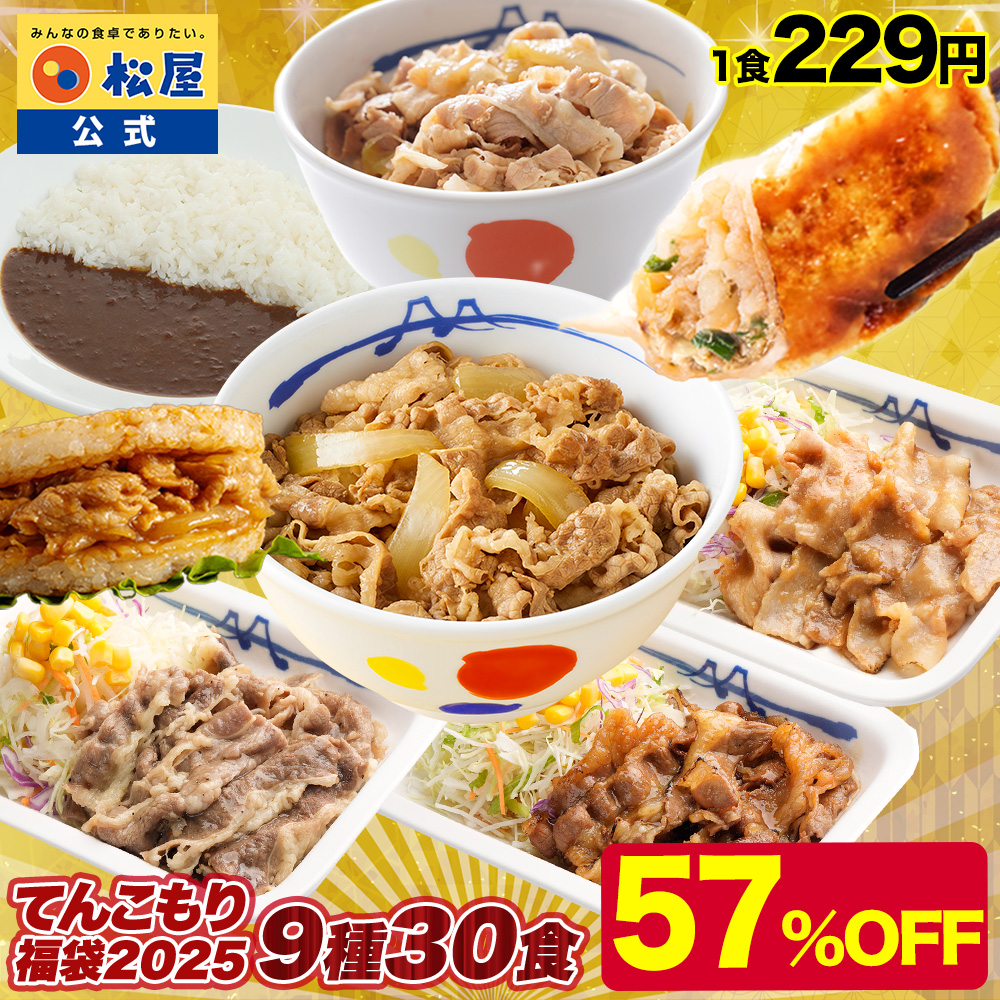 【1食229円!単品合計価格16,350円→6,870円!】2025年 松屋のてんこもり福袋!9種30食入り 冷凍食品 保存食 一人暮らし 牛丼 まつや 非常食 米 お米