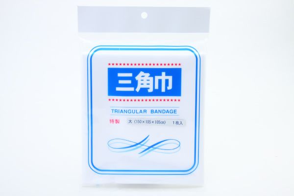 【使いやすいサイズで耐久性にすぐれた良質な三角巾です。綿100%。お肌にやさしく安心です】◆2セット(20枚)以上お買い上げの方は送料が無料になります!!◆3セット(30枚)以上の方には代引き手数料も無料にさせていただきます。※お買い上げ直後は送料が記載されますが、当店にて送料を訂正しメール差し上げます。創業60年、衛生材料メーカーの老舗メーカー直送だからできるこの安さ!防災、救急関係などのおまとめ買いに最適です。この三角巾は丈夫で衛生的に作られ応急処置に身体のどの部分にも万能的に使用できる簡便な包帯です。各公私立病院、諸医院でも賞用されており、御家庭、工場等の救急箱に、マイカー、レジャーの救急常備品としてぜひお求めください。【綿100%】【三角巾の腕のつり方】【三角巾の手の巻き方】■製造販売元:萬星衛生材料株式会社■サイズ:150×105×105CM■綿100%