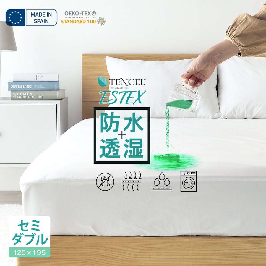 防水シーツ セミダブル ボックスシーツ マットレスカバー マットレスプロテクター スペイン直輸入 防水 通気性 水を通さない ESTEX