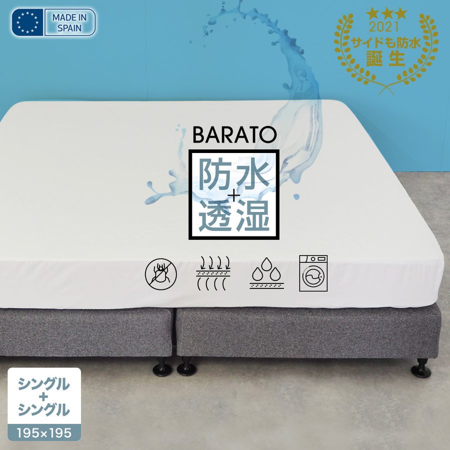 ボックスシーツ マットレスプロテクター おねしょシーツ 防水シーツ シングル2台用サイズ シングル+シングル キング 195×195cm スペイン直輸入 防水透湿 BARATO