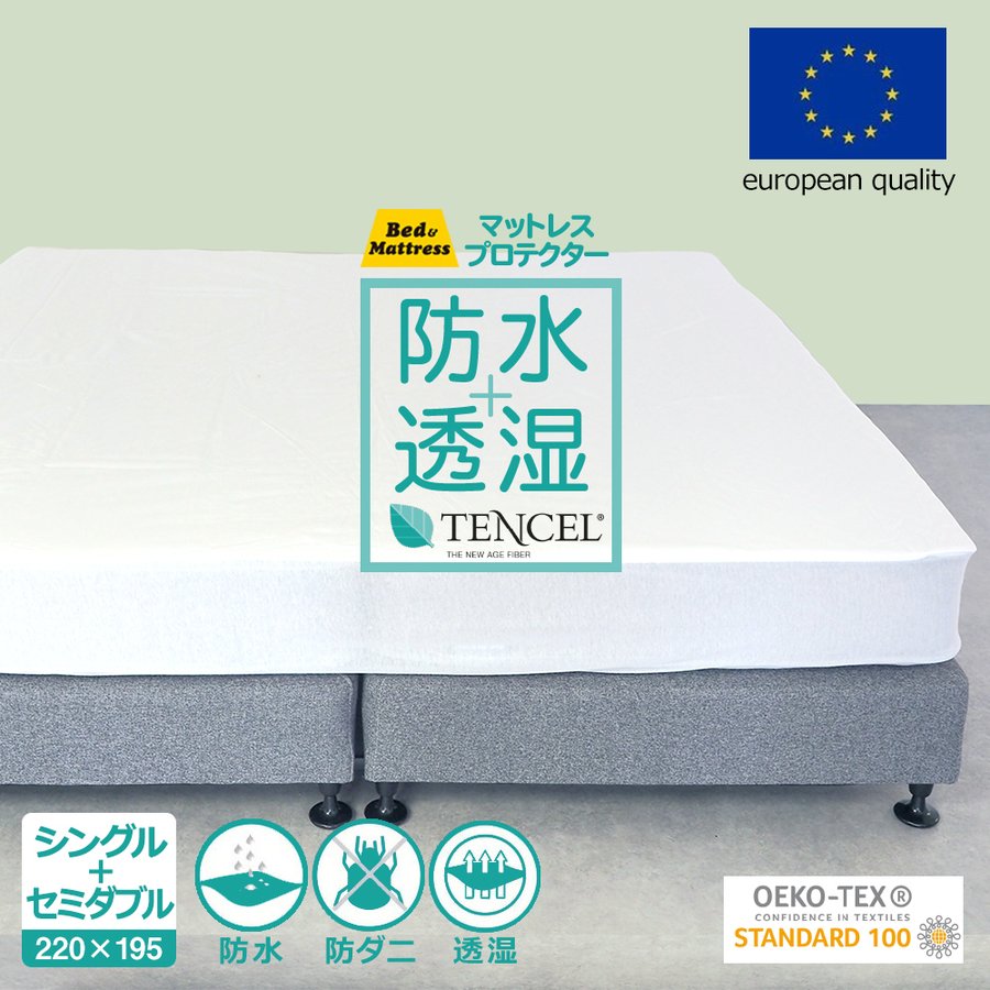 防水シーツ ボックスシーツ マットレスプロテクター 2台用サイズ シングル+セミダブル 220×195cm スペイン直輸入 防水 通気性 水を通さない ESTEX