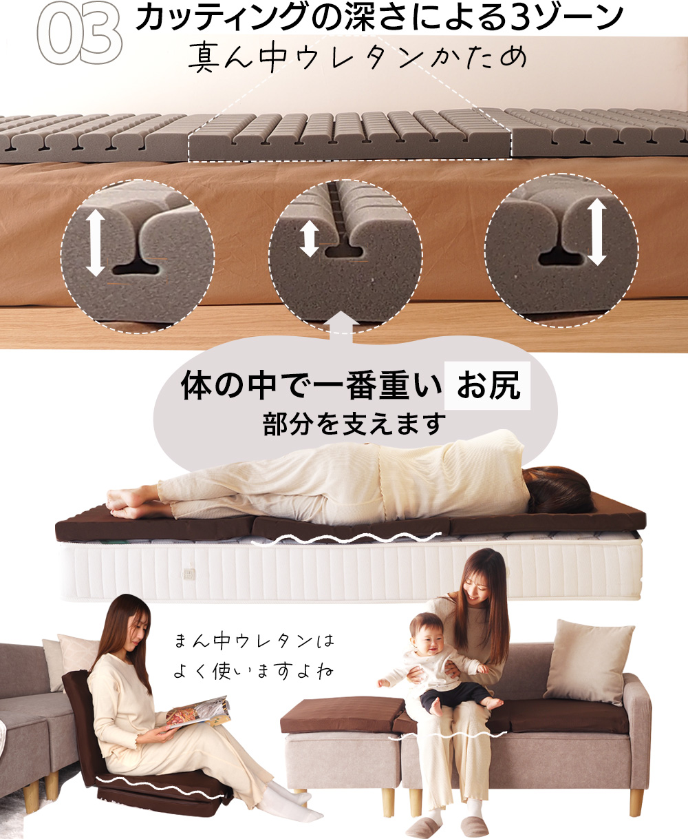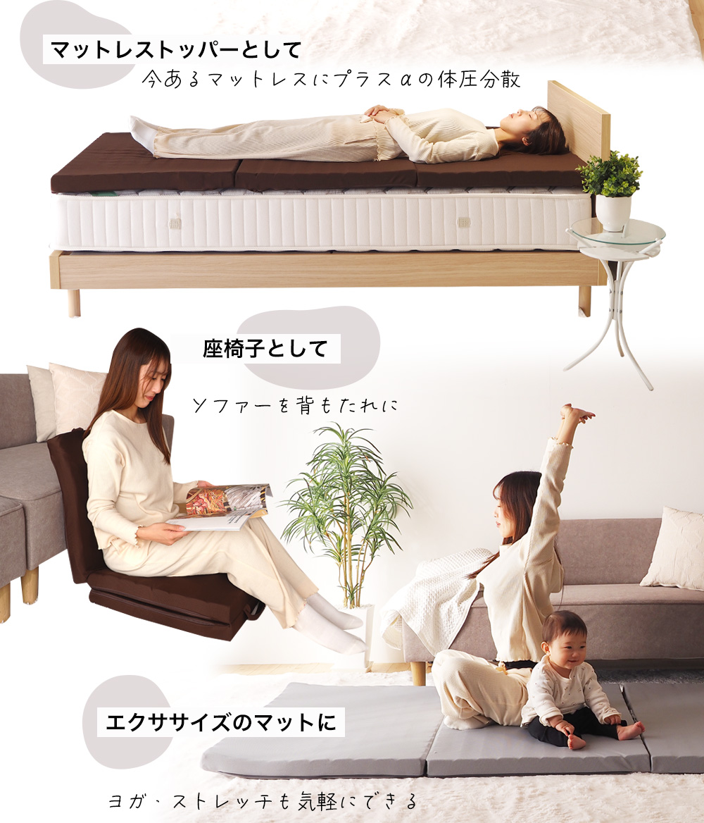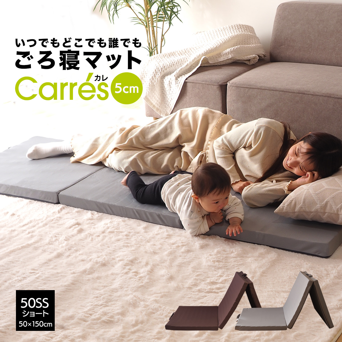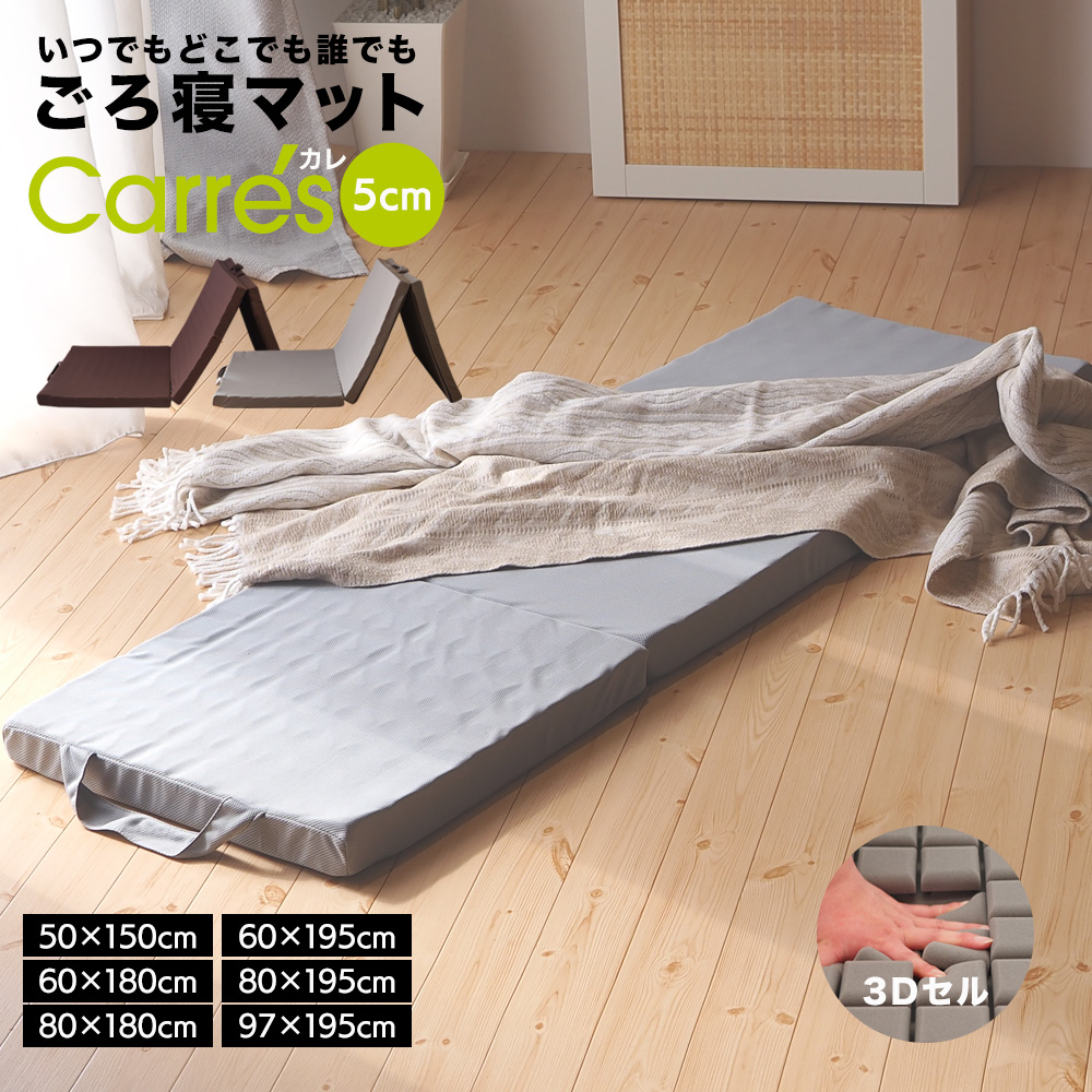 ごろ寝マット 50SSショート(50×150cm) スリムショート 折りたたみ 3つ折り 長座布団 厚さ5cm ヨガマット マット 車中泊 キャンプ お昼寝マット 布団