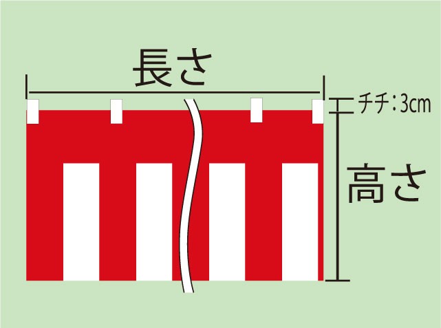 *紅白幕のサイズ表記には、チチの高さは含みません。 *チチの高さは、約3cm程度となっております。 *ロットにより、表示サイズと若干の誤差がある場合がございます。 |