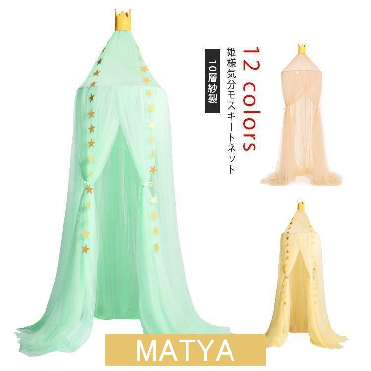 天蓋カーテン ベビーベッド 子供部屋 ベッド 蚊帳 テント 10層紗製 モスキートネット モノトーン カヤ テント 吊るし具付 スリーピング