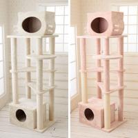 木製のねこ顔ハウス付!長身スリムな据置きタワーです。
