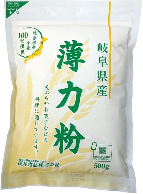 ○岐阜県で栽培されたたんぱく質の少ない小麦を製粉したものです。