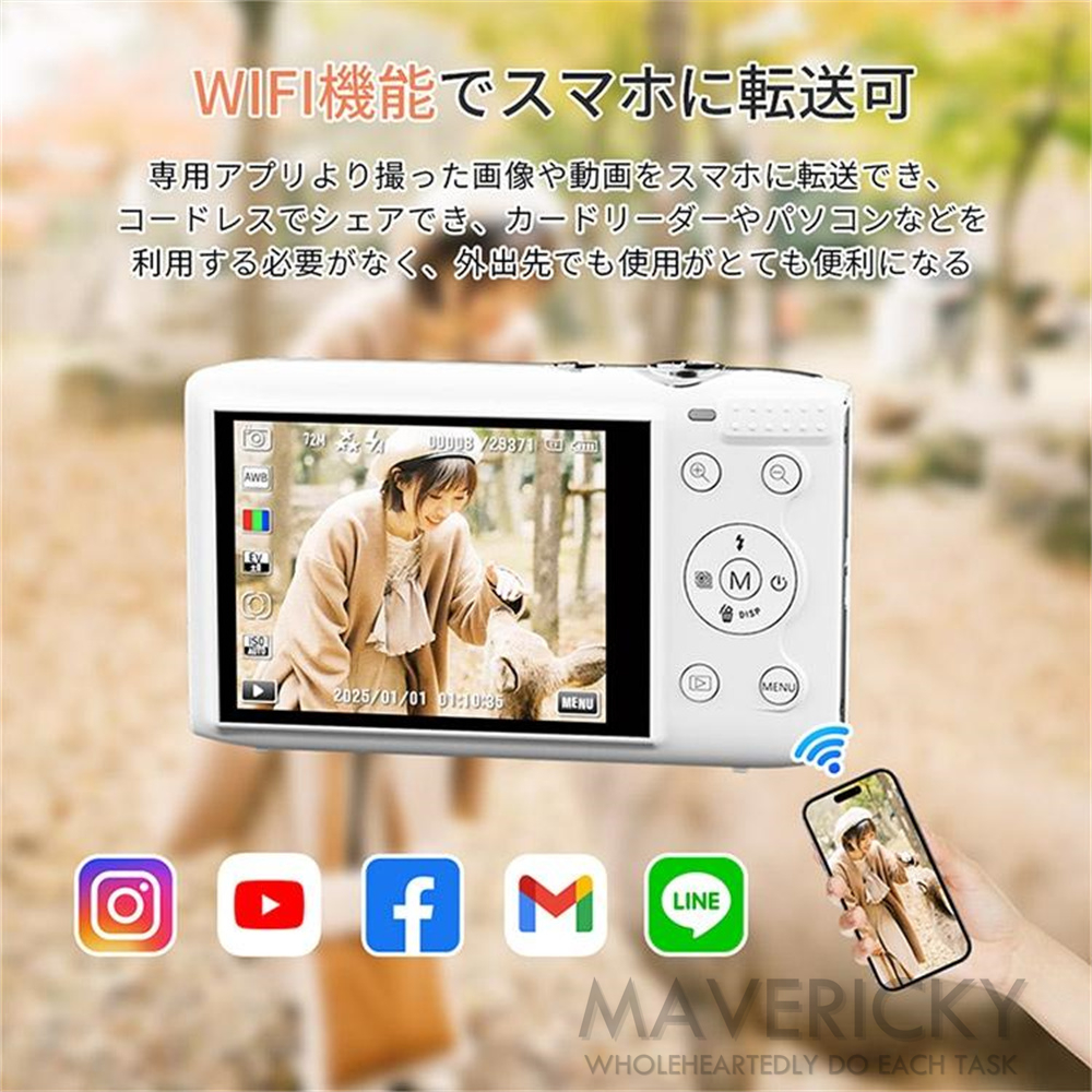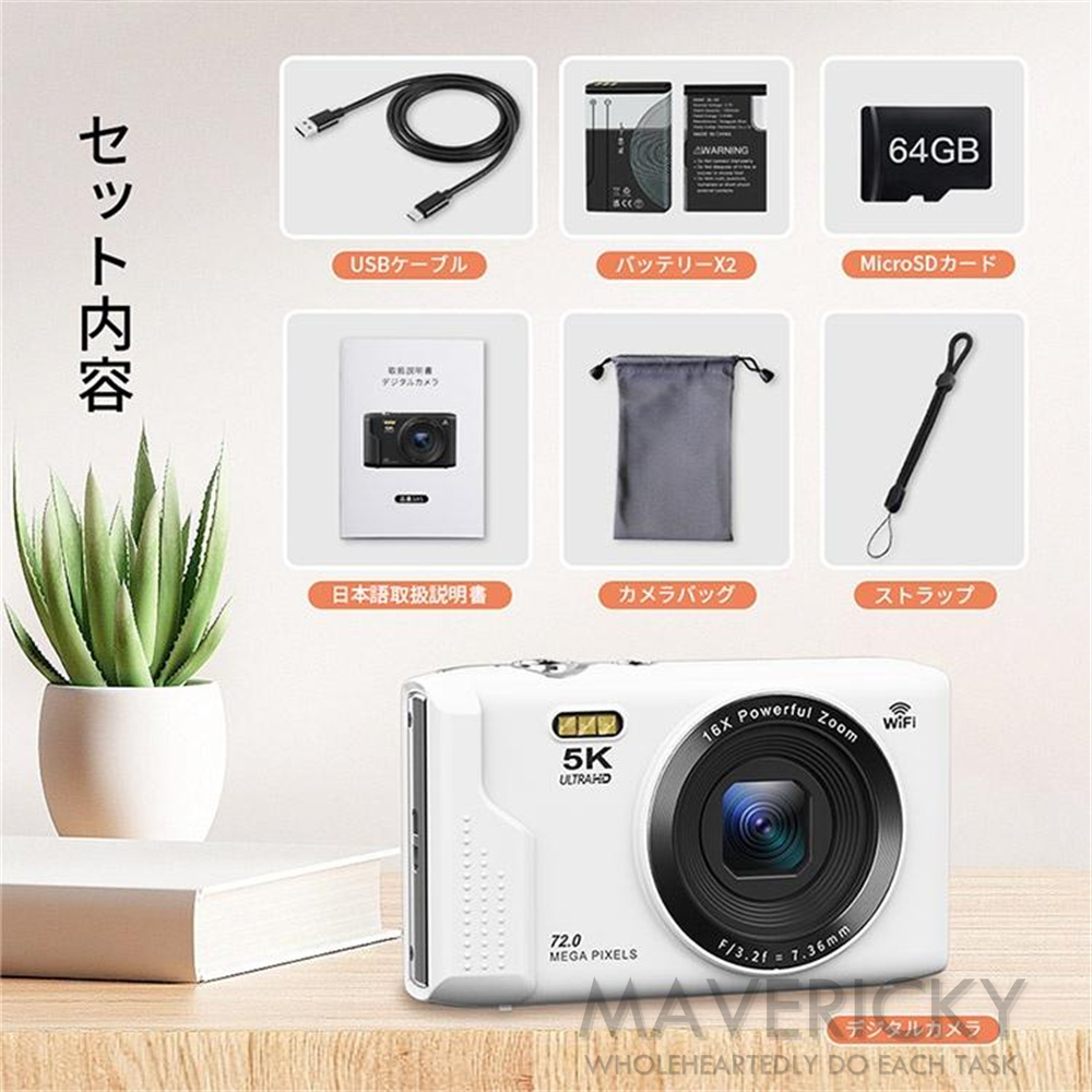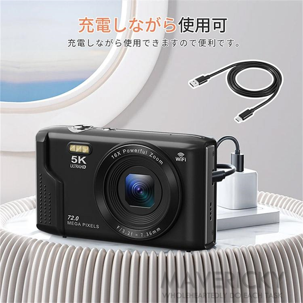 デジカメ デジタルカメラ 5K 7200万画素 2.8インチ 16倍ズーム 高画質 WiFi機能 ビデオカメラ オートフォーカス 手振れ補正 IPS大画面 軽量 子供 安い 2025新品