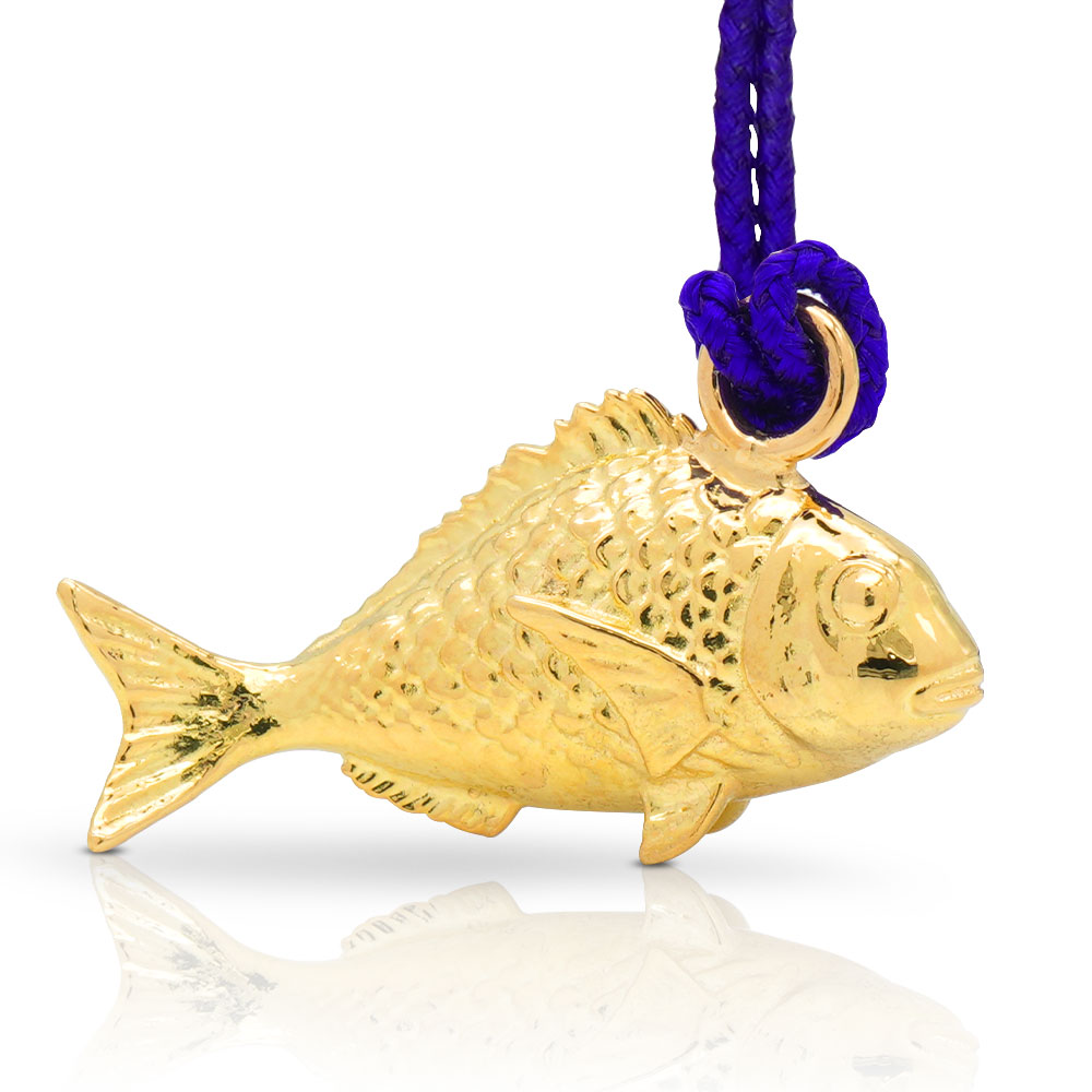 鯛の形状と金メッキの輝きが、持ち主に大金や成功を呼び寄せる。