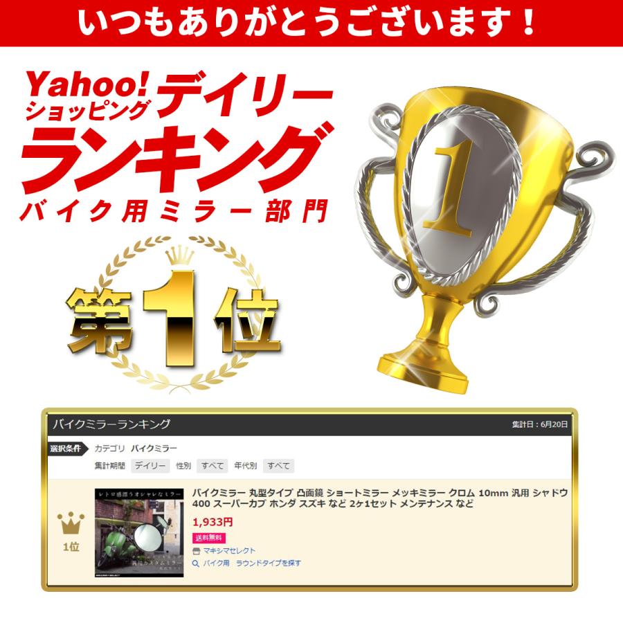 バイクミラー 丸型タイプ 凸面鏡 ショートミラー メッキミラー クロム 10mm 汎用 左右セット シャドウ400 スーパーカブ ホンダ スズキ 2ヶ1セット メンテナンス