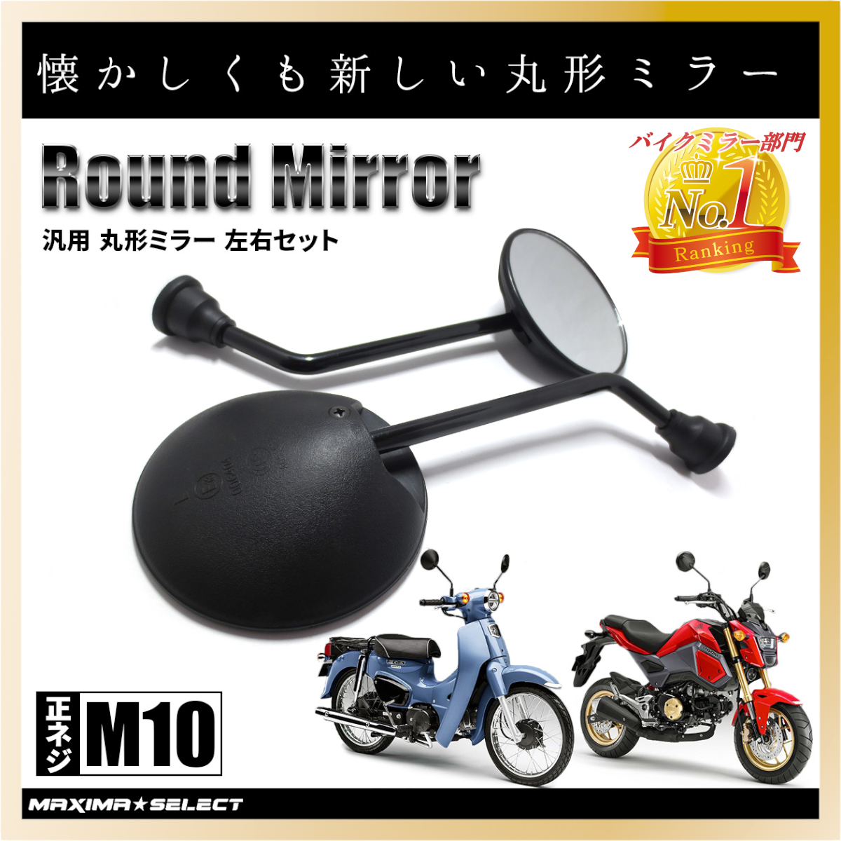 バイク 丸型ミラー ミラー サイドミラー 丸型 ブラック 汎用 凸面ミラー 左右セット M10 正ネジ Z2 スーパーカブ110 エストレア ZOOMER-X