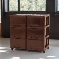 収納ケース プラスチック 引き出し 深型 3段 2個組 おしゃれ チョコレートブラウン スリム キャスター付 幅34.5cm 奥行41.5cm 高さ69.4cm 組立式 日本製