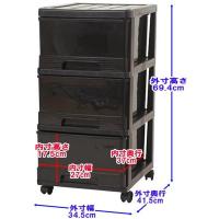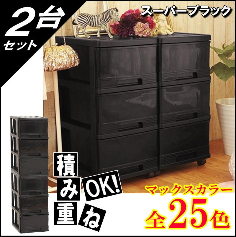 収納ケース プラスチック 引き出し 深型 3段 2個組 おしゃれ スーパーブラック スリム キャスター付き 幅34.5cm 奥行41.5cm 高さ69.4cm 全25色 完成品 日本製