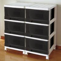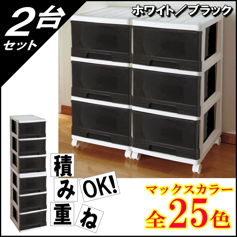 収納ケース プラスチック 引き出し 深型 3段 2個組 おしゃれ ホワイト/ブラック スリム キャスター付き 幅34.5cm 奥行41.5cm 高さ69.4cm 全25色 完成品 日本製
