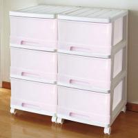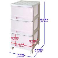 収納ケース プラスチック 引き出し 深型 3段 2個組 おしゃれ ホワイト/チェリーピンク スリム キャスター付 幅34.5 奥行41.5 高さ69.4cm 全25色 完成品 日本製