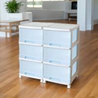 収納ケース プラスチック 引き出し 深型 3段 2個組 おしゃれ ホワイト/アイスブルー スリム キャスター付き 幅34.5 奥行41.5 高さ69.4cm 組立式 日本製