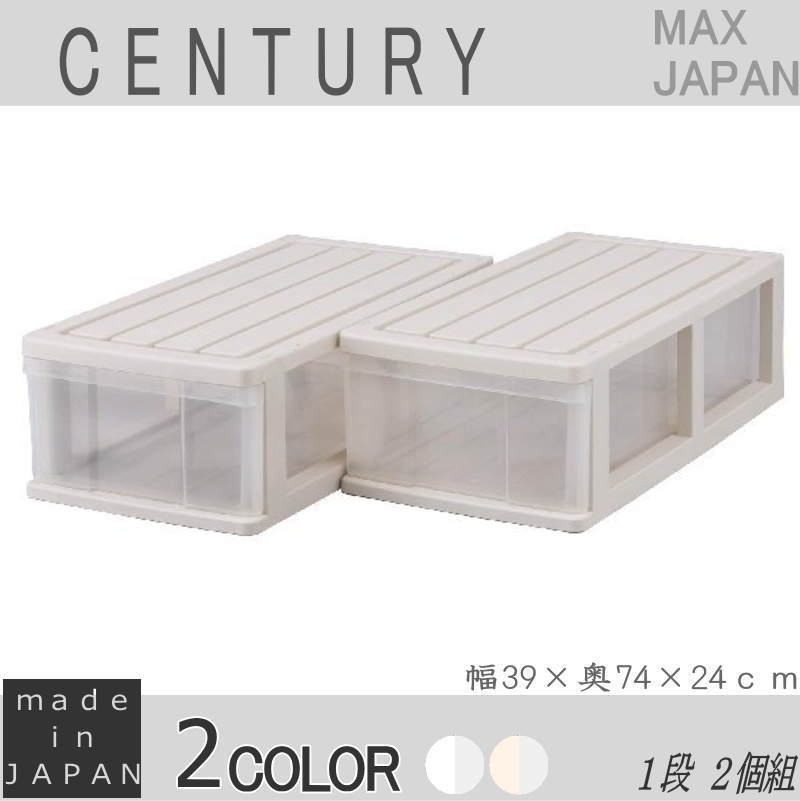 押入れ収納 衣装ケース 収納ケース プラスチック 引き出し 透明 クリア 浅型 1段 2個組 おしゃれ ベージュ/クリア 幅39cm 奥行74cm 高さ24cm 完成品 日本製