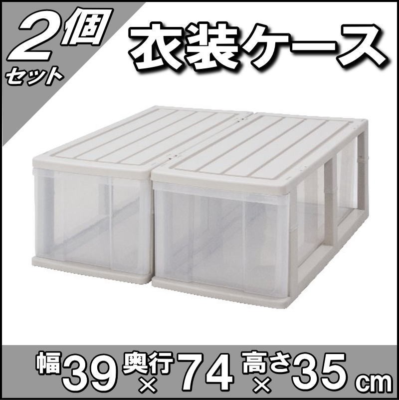 押入れ収納 衣装ケース 収納ケース プラスチック 引き出し 透明 クリア 深型 1段 2個組 おしゃれ ベージュ/クリア 幅39cm 奥行74cm 高さ34.7cm 完成品 日本製