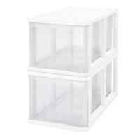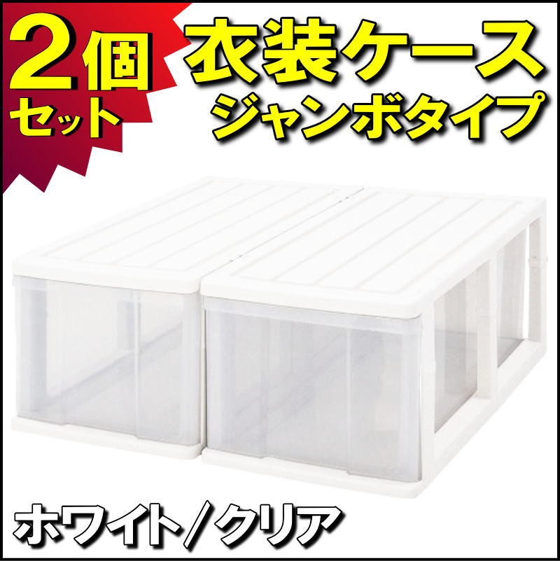 押入れ収納 衣装ケース 収納ケース プラスチック 引き出し 透明 クリア 深型 1段 2個組 おしゃれ ホワイト/クリア 幅39cm 奥行74cm 高さ34.7cm 完成品 日本製