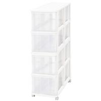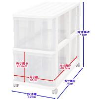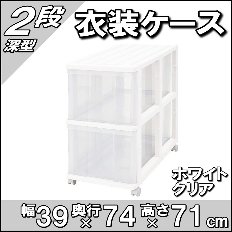 押入れ収納 衣装ケース 収納ケース 引き出し プラスチック 透明 深型 2段 おしゃれ ホワイト/クリア キャスター付き 幅39cm 奥行74cm 高さ71cm 組立式 日本製