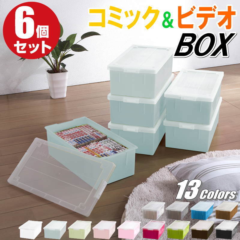 コミック 漫画 ビデオ ゲームソフト バックル式 フタ付き 収納ケース プラスチック カラーボックス 仕切り板 おしゃれ アイスブルー 同色 6個組 日本製
