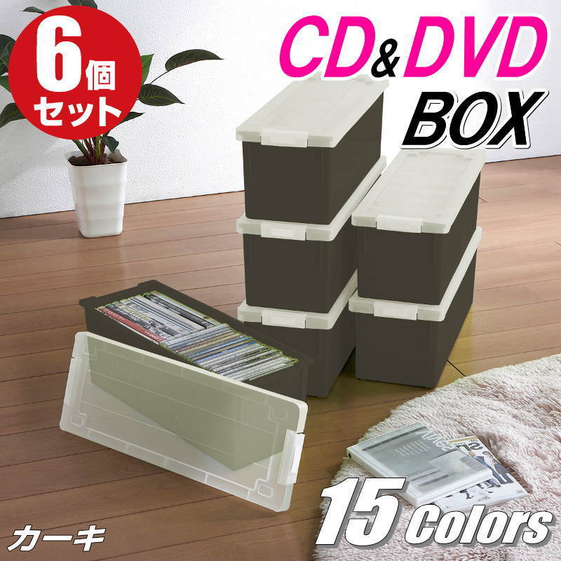 CDケース DVDケース 収納ボックス フタ付 収納ケース 小物入れ メディアボックス バックル式 おしゃれ カーキ 同色 6個組 完成品 日本製