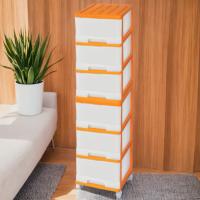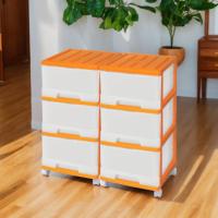 収納ケース プラスチック 引き出し 深型 3段 2個組 おしゃれ オレンジ スリム キャスター付き 幅34.5cm 奥行41.5cm 高さ69.4cm 組立式 日本製