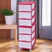 収納ケース プラスチック 引き出し 深型 3段 2個組 おしゃれ レッド スリム キャスター付き 幅34.5cm 奥行41.5cm 高さ69.4cm 組立式 日本製