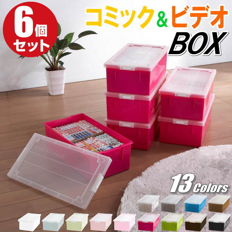 コミック 漫画 ビデオ 収納ケース バックル式 収納ボックス フタ付き カラーボックス プラスチック おしゃれ ピンク 同色 6個組 完成品 日本製